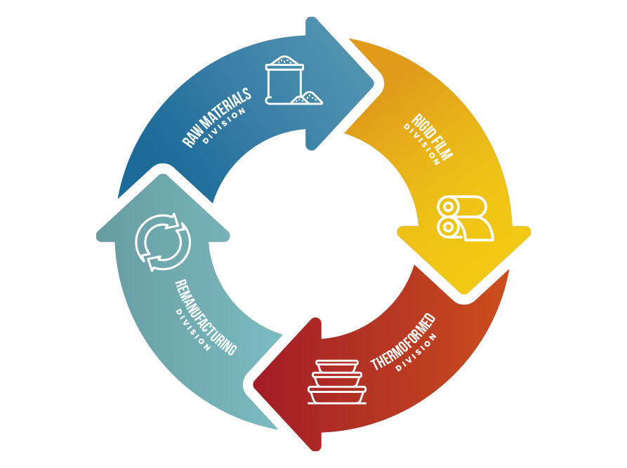 This mechanism allows us to use it again in our rigid film productions, taking advantage of the closed loop created and significantly reducing the company's environmental impact.