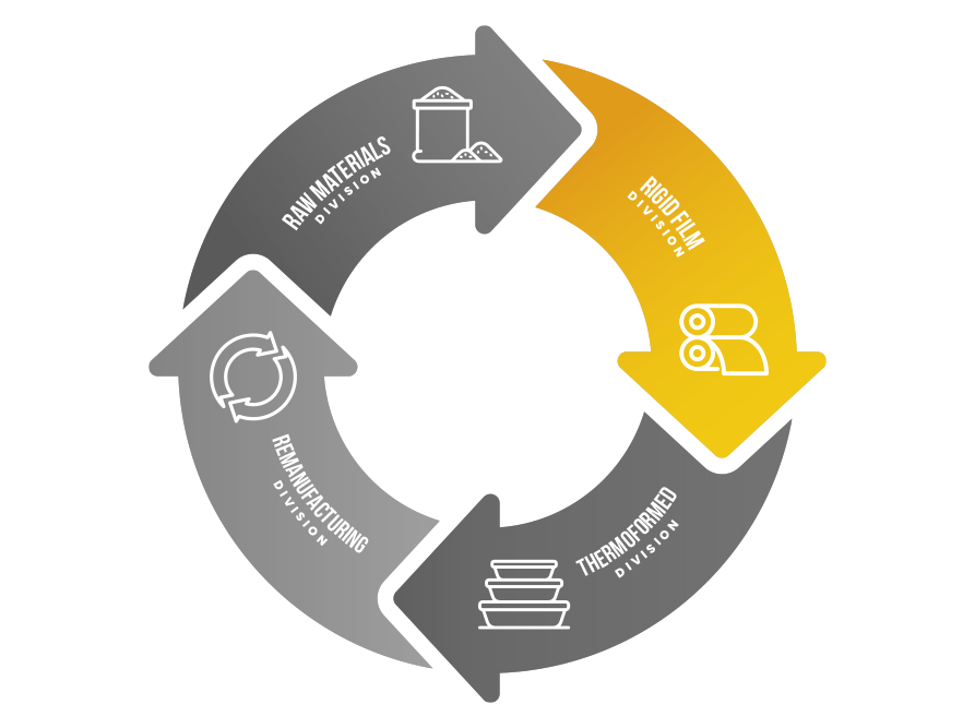 We produce rigid thermoforming film for the food industry and for different kind of technical applications.